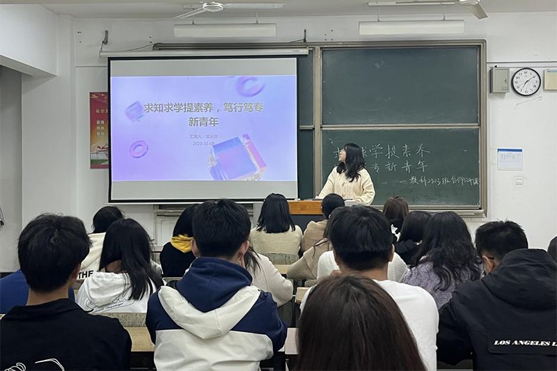 此次团日活动十分有纪念意义,2303班开展了一次以“求知求学提素养,笃行笃专新青年”的主题教育团课,团支书以演示文稿的方式向同学们介绍了新青年的优秀品质、素养的相关内容。