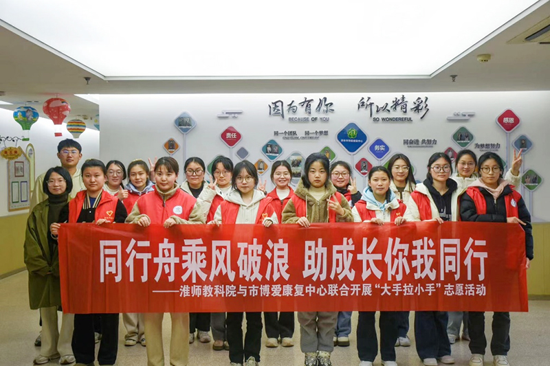 教科网3月29日电(记者 夏雨欣 吴悦)为弘扬奉献、友爱、互助、进步的志愿服务精神,营造主题教育月的浓厚氛围,培养大学生综合素质,3月27日,royal皇家88平台教育科学学院“槐青”志愿服务团队与市博爱康复中心联合开展“大手拉小手”志愿活动。