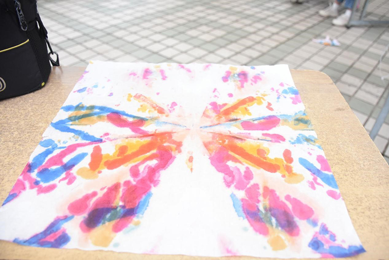 本次活动举办面对对象为淮师全体学生,参与人员众多,首先由负责人介绍此次扎染活动的历史背景,后亲自示范教学,在过程中,同学们积极参与,发挥自己的动手能力,创作了一幅幅属于自己的扎染作品,其中,色彩丰富,图案精巧。此次活动让同学们在心中厚植文化底蕴,传承中华民族的传统工艺,培养了他们的创新精神,同时,进一步提升了学生们的艺术情操,丰富了校园文化生活。大家在活动中邂逅扎染了艺术,充满了乐趣,也在新奇的体验中传承了非遗文化。