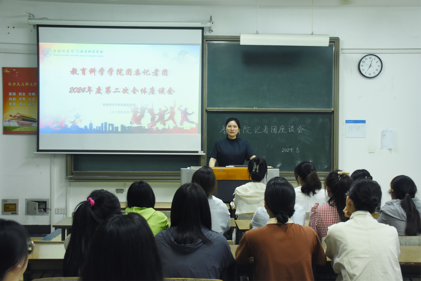 教科网5月22日电(记者 晏紫灵)为进一步提高教科院记者团的综合素质和整体工作水平,5月21日晚,教育科学学院于崇文楼1-201教室召开了记者团座谈会,会议由辅导员张菁菁主持,记者团全体成员参加。