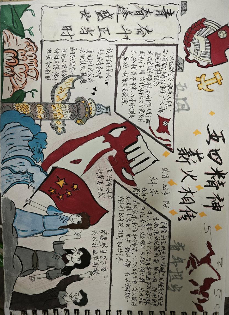 同学们围绕“五四运动”这一历史节点,以征文和绘画的形式,展现了自己对五四精神的理解和感悟。他们发挥丰富的想象力和创造力,将五四精神融入作品之中,用文字和画笔描绘出了一幅幅生动而深刻的画面。