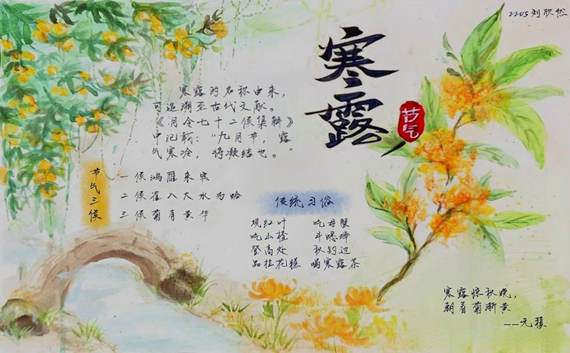 参加的同学们以“节气”为活动主题,以书法与美术融为一体的手抄报为活动形式,同学们将发挥想象与创造性,表达出自己心中对于“节气”的了解和认识。
