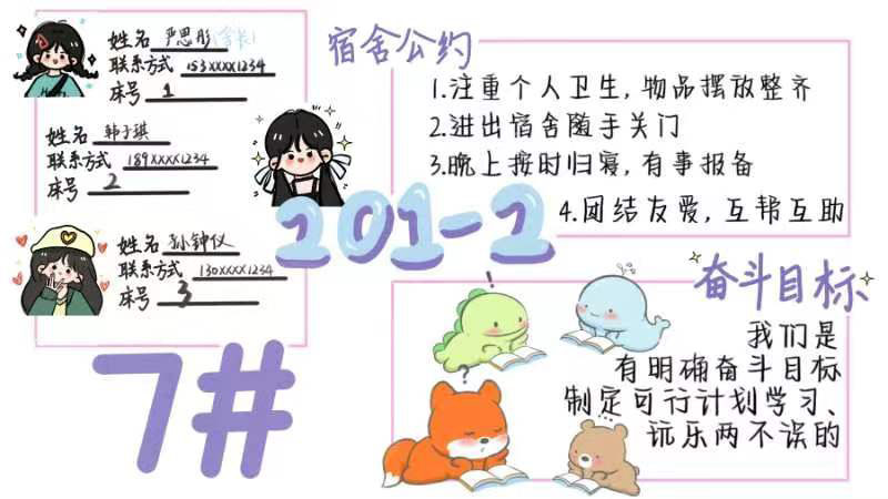 活动自启动以来,便受到了同学们的热烈响应。大家纷纷利用课余时间,围绕“桃李不言,美自寝出”的主题,展开了一场场头脑风暴。在宿舍成员的共同协作下,一幅幅富有创意、蕴含深意的宿舍名片应运而生。有的名片通过精美的电子绘图,展现了宿舍成员间的温馨瞬间;有的则利用图片和文字,阐明宿舍公约和奋斗目标。