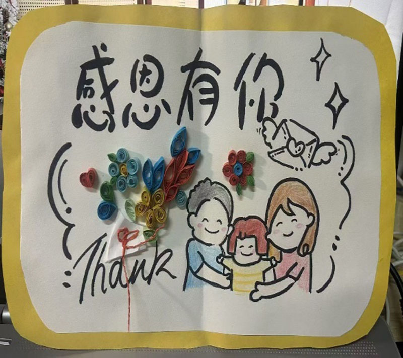 活动采用线上参与的方式,主要内容为“感恩”拥抱卡的制作。同学们以自身感悟设计创作出精心装饰的心仪作品,在写下的自我期待与感恩留言的同时,充分发挥动手能力和想象力,表达出自己内心的感谢。在活动进行当中,大家积极参与,在平台上展现自我风采,倡导感恩回馈,鼓励大家以实际行动表达感谢,推广出感恩背后的文化价值,完成出色的作品。在活动结束后,学院对这些优秀精美的作品进行了评奖,同学们将自己的作品送到那个深爱的人手里,留下感恩的足迹,让更多人感受到温暖的魔力。