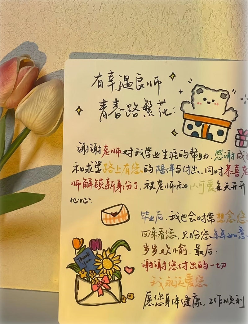 通过本次活动,学生能通过自身感悟创新性表达内心,并能倡导以实际行动去感恩与回馈,既调动了同学们的动手能力,也有着情绪调节、激发动力和提升个人心理素质的功用,具有积极引导作用,为建设多彩校园文化贡献出了自己的才思力量,推动了教科院的进一步向上发展。