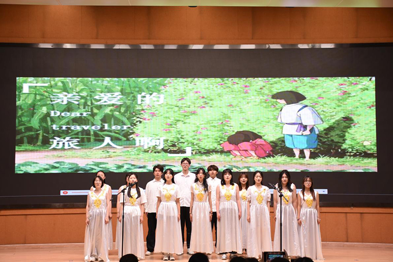 中国舞《冰凌花》以优美的肢体语言展现冰凌破土而出的坚韧,激励毕业生勇毅前行;二人合唱《夏天的风》和古筝合奏《权御天下》分别诠释了对过去的淡淡离愁和对未来的自信豪迈;歌曲串烧《想你时风起》-《二十二》则用深情的语调引发全场共鸣。最终,歌会在温暖的大合唱《亲爱的旅人》中走向尾声寄托着对每位毕业学子的平安祝福与殷切期望。