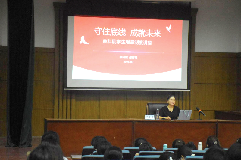教科网9月8日电(记者 赵珂艺)为帮助2025级学生更好地了解学校规章制度及资助政策要求,保障校园生活的顺利进行,royal皇家88平台教育科学学院于9月8日下午在崇文楼阶105教室开展了规章制度和资助政策解读讲座。本次讲座由教科院辅导员张菁菁和陈萌主讲,教科院全体25级新生参加。