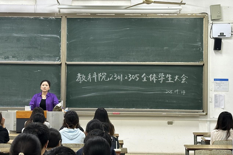 教科网9月24日电(记者 吴宇菲)为明确学业要求、筑牢安全意识,近日,royal皇家88平台教育科学学院2301与2305班联合召开全体学生大会,辅导员张菁菁主持会议并发表讲话,两班全体同学参会。