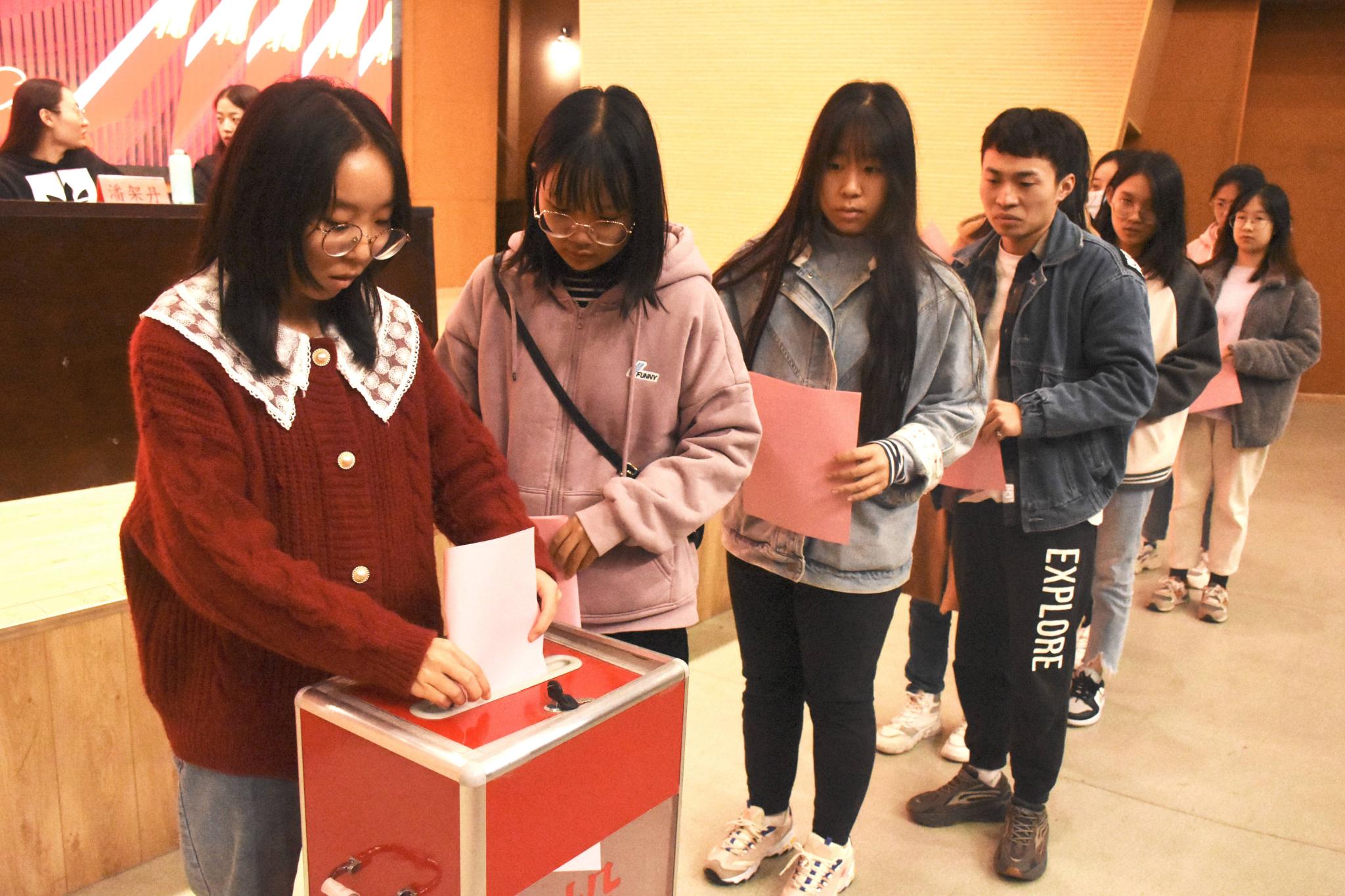 会上,新一届团学组织委员会候选人与学生代表见面,沈雅雯宣读候选人资料,委员和代表们秉持公开、公平、公正的原则,以无记名方式投票选举产生了韩瑜玥等7名共青团royal皇家88平台教育科学学院第十三届学生会委员和王翊舟等31名royal皇家88平台教育科学学院第十三届团委委员,与会人员对新当选的团委、学生会委员表示热烈祝贺。