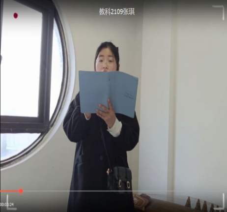 经过为期一周的线上征集,活动取得了满意成效。许多同学踊跃参与其中,共赴这场春日之约,以多种多样的形式表达了自己对春分时令的体悟。如书法、诗歌等形式,提交的作品各具特色、情感真挚丰富。图为范蓉蓉同学的书法作品。书法苍劲有力,书写时行云流水,以自己的感悟,为我们描绘了,她对春日风景的一番体验。而周一凡同学的小篆,处处流露出其深厚的书法功底,他自创的三行诗首句,夫春水漾百花芳,以细腻的笔触,勾勒出春水之柔,百花之艳,为我们展示出了一副明媚又柔和的春景。而张琪同学,又用饱满的声音,为我们朗诵了一篇诗赋,以另一种方式抒发了自己对这明媚春日的感情。