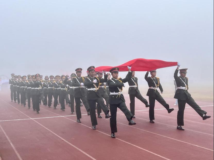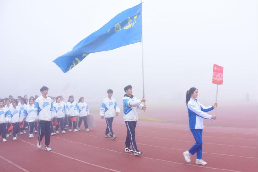 嘹亮的国歌声响起,全体人员起立高唱国歌。升旗仪式结束后,由副校长毛广雄致开场词。他强调,本次校运会的开展,贯彻了习近平总书记在二十大作出的重要指示,充分发挥了体育在促进学生发展上的作用,为每位学子提供了一个展示技能、挑战自我的平台。同时,他也指出运动员们也应大力弘扬中华民族体育精神,尊重对手尊重裁判及在场的每一位志愿者,展现青年良好的精神风貌,做到运动成绩和精神文明双丰收。最后,裁判员代表高彩霞和运动员代表高硕面向全体师生进行宣誓。