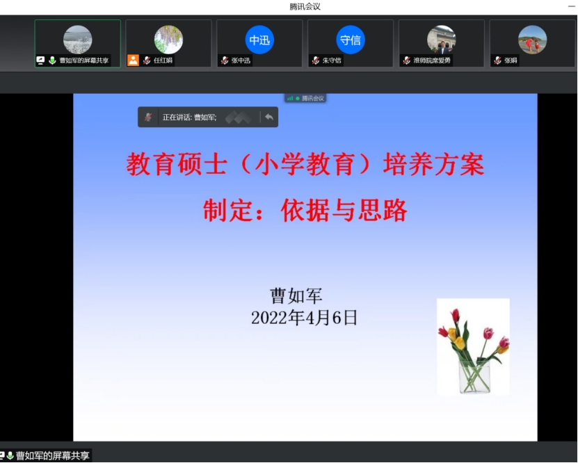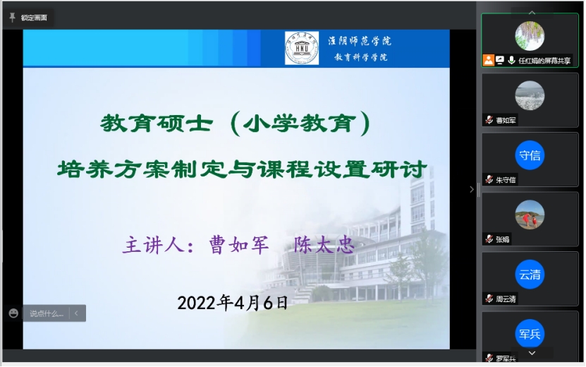 教科网4月8日电(记者 赵影)4月6日,教育科学学院举办了线上教学沙龙活动,围绕教育硕士(小学教育)培养方案制定与课程设置的问题进行研讨,活动由副院长任红娟主持,教科院院长曹如军、院学科办秘书陈太忠主讲,教育科学学院小学教育、学前教育、教育技术、应用心理学专业学科带头人、骨干教师共50余人参加。