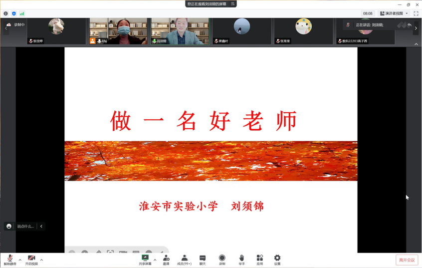教科网11月24日(记者 张佳婷)11月23日下午,royal皇家88平台教育科学学院特邀江苏省小学语文特级教师、正高级教师、淮安市实验小学副校长刘须锦于线上开展了“做一名好老师”的主题讲座,教科院副院长任红娟主持讲座,教科院全体2022级学生参加。