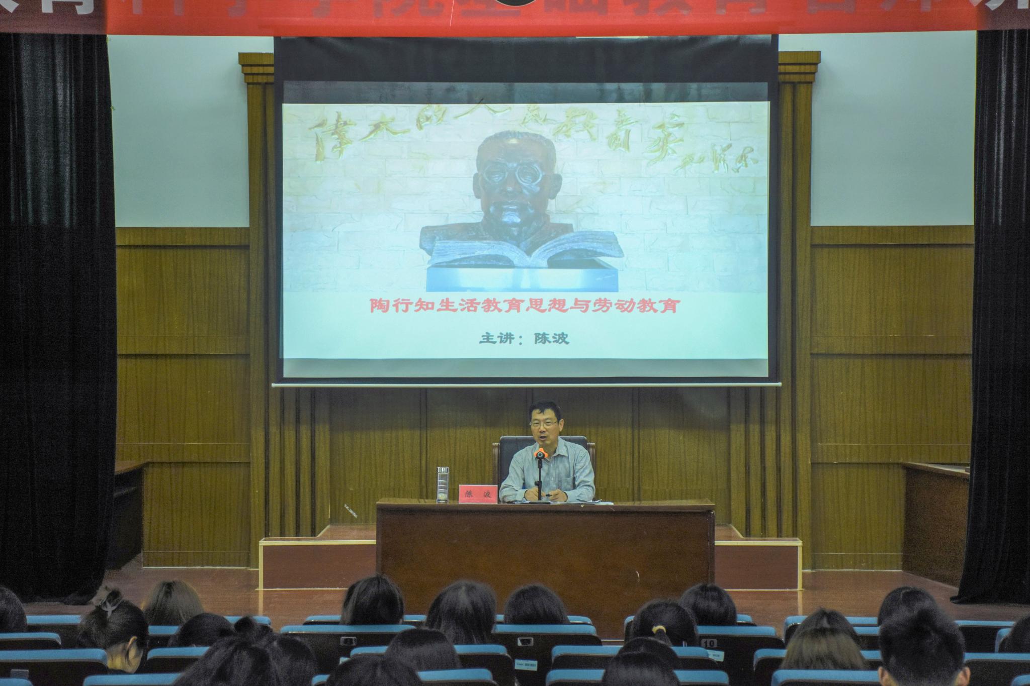 教科网5月19日电(记者 崔茜 李纤忆)5月17日下午,royal皇家88平台教育科学学院特邀淮安市教育局原副局长、淮安市陶行知研究会会长陈波先生开展了以“陶行知生活教育思想与劳动教育”为主题的讲座。本次讲座由教科院副院长任红娟主持,教科院2022级部分学生参加。