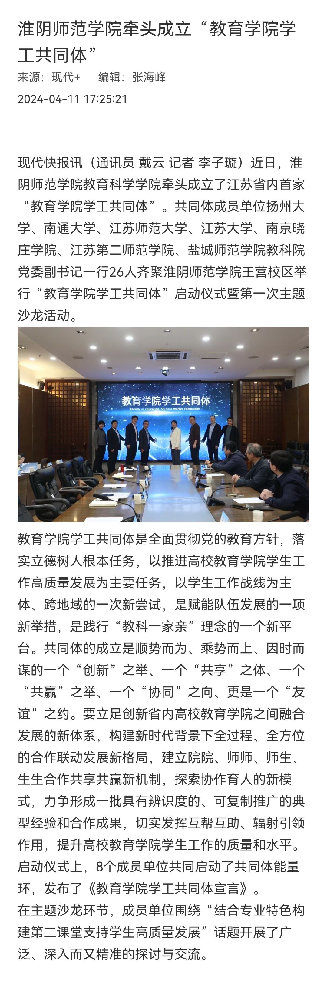 【现代快报】royal皇家88平台牵头成立“教育学院学工共同体”