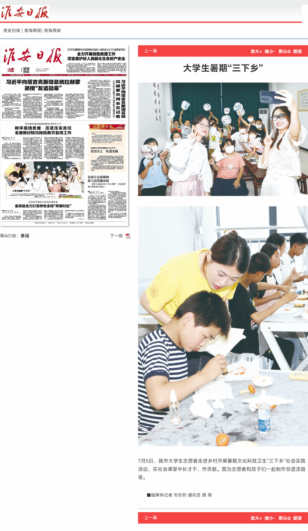 刊播媒体:淮安日报      刊播时间:7月5日      通讯员:唐瑀