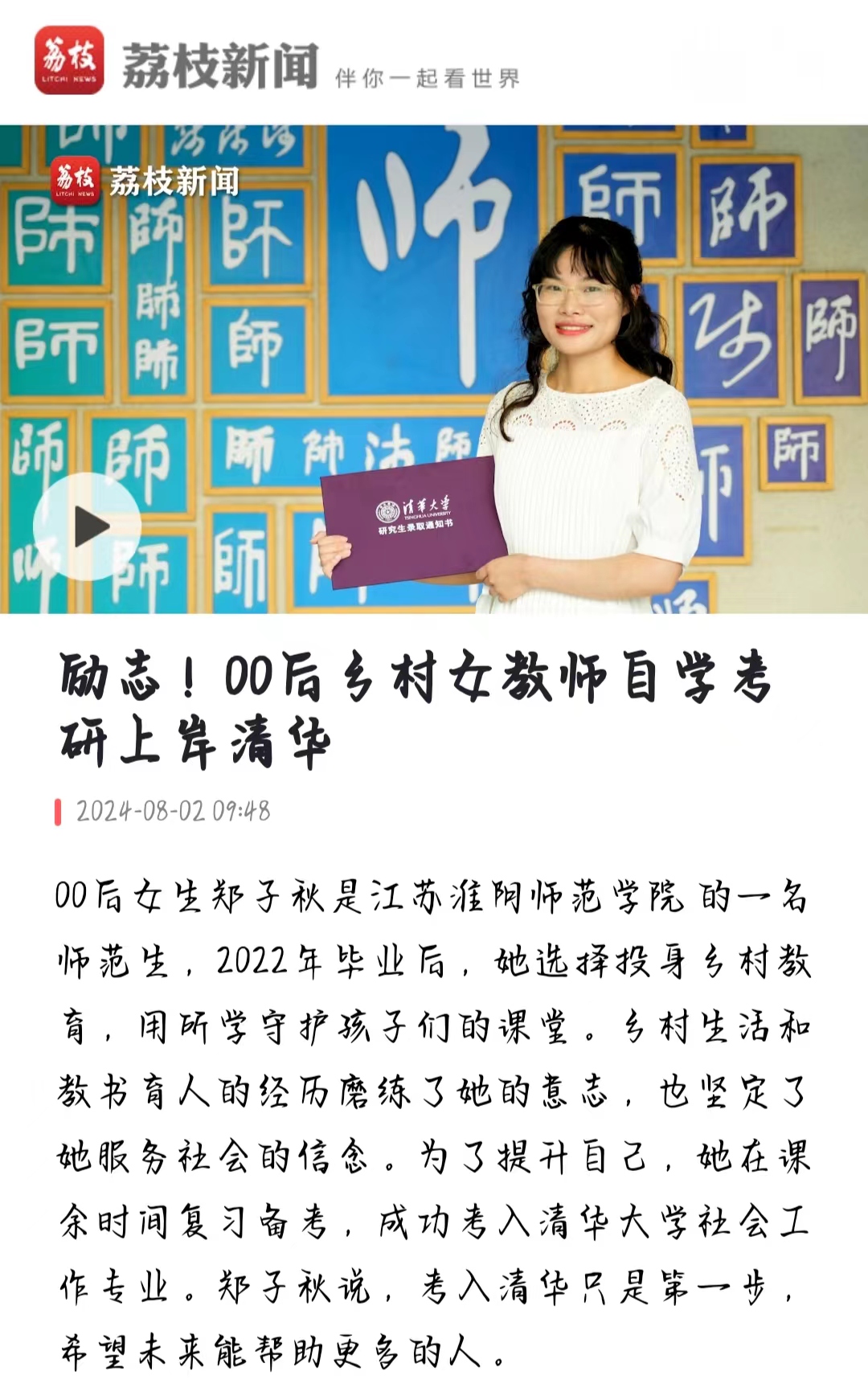 【荔枝新闻】励志!00后乡村女教师自学考研上岸清华