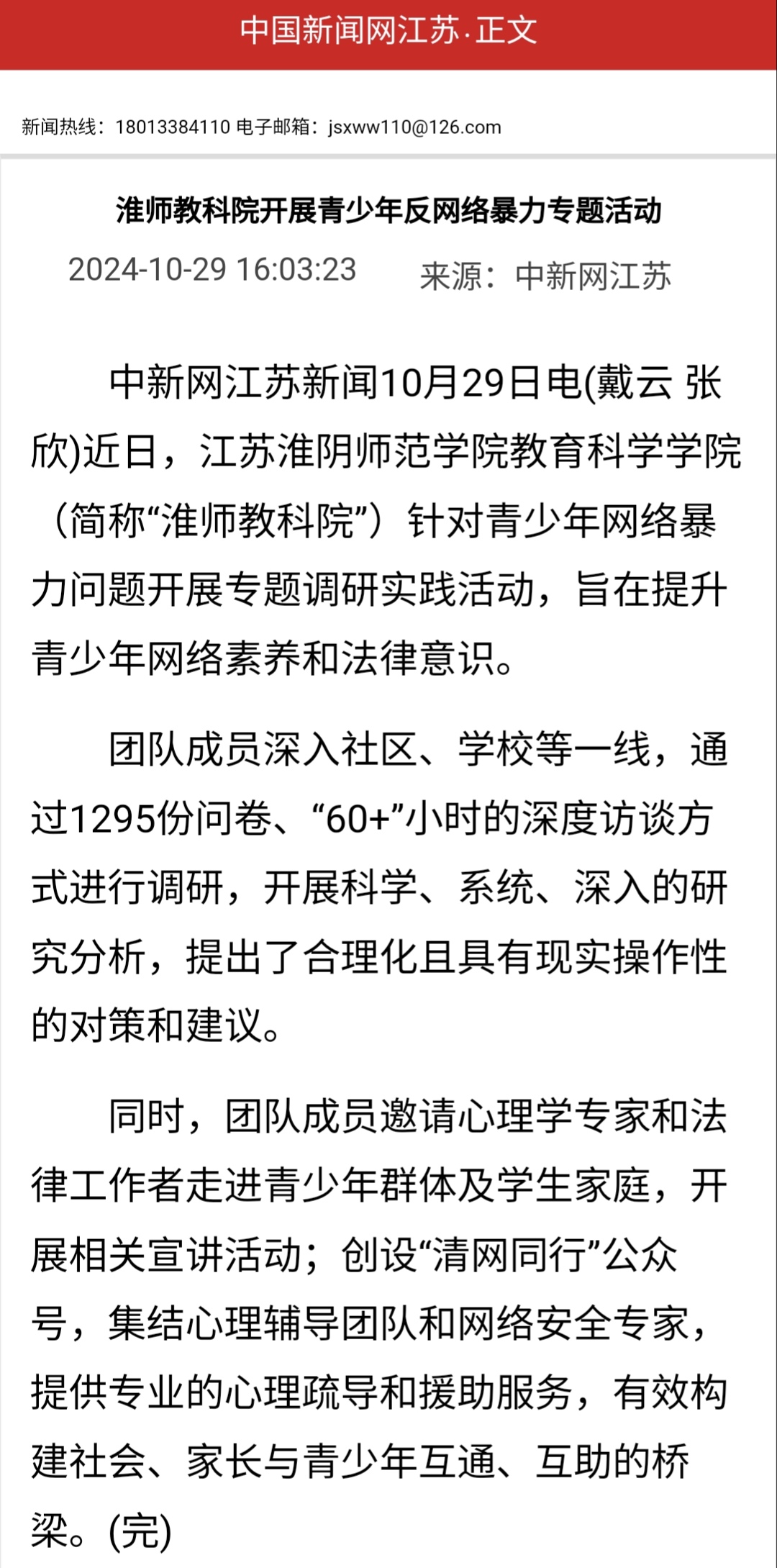 【中国新闻网】淮师教科院开展青少年反网络暴力专题活动