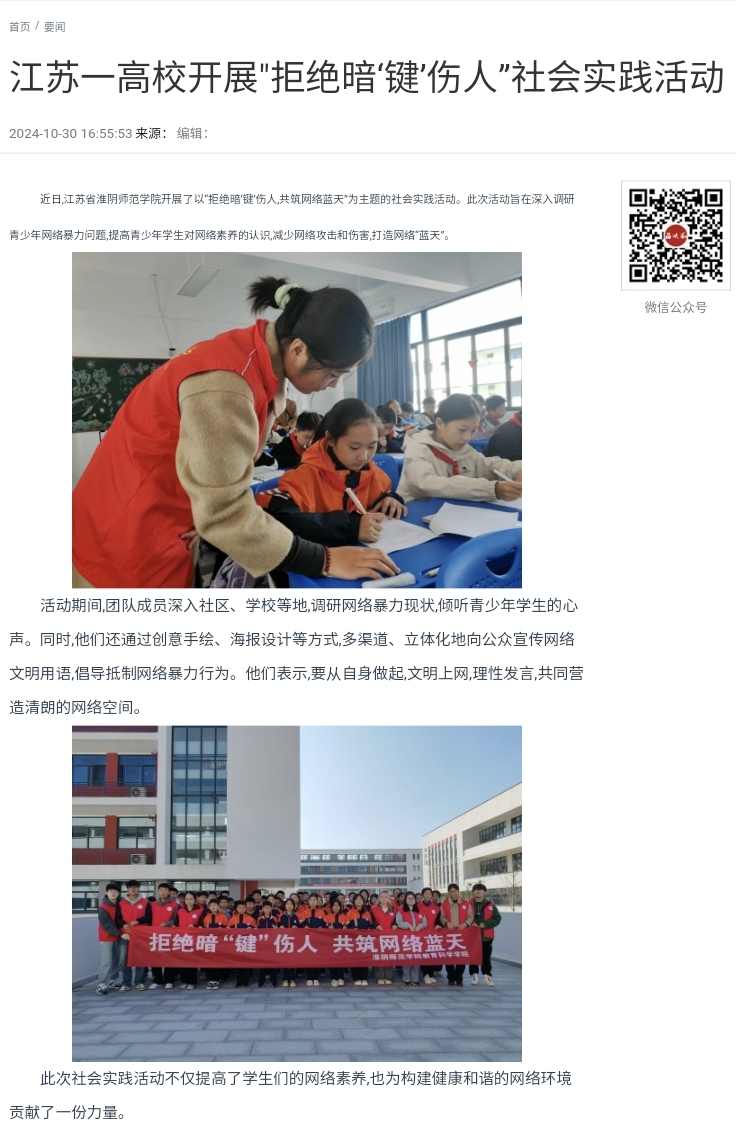 【新封面简闻】江苏一高校开展“拒绝暗‘键’伤人”社会实践活动