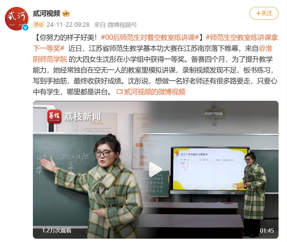 【贰河视频】你努力的样子好美!#00后师范生对着空教室练讲课#
