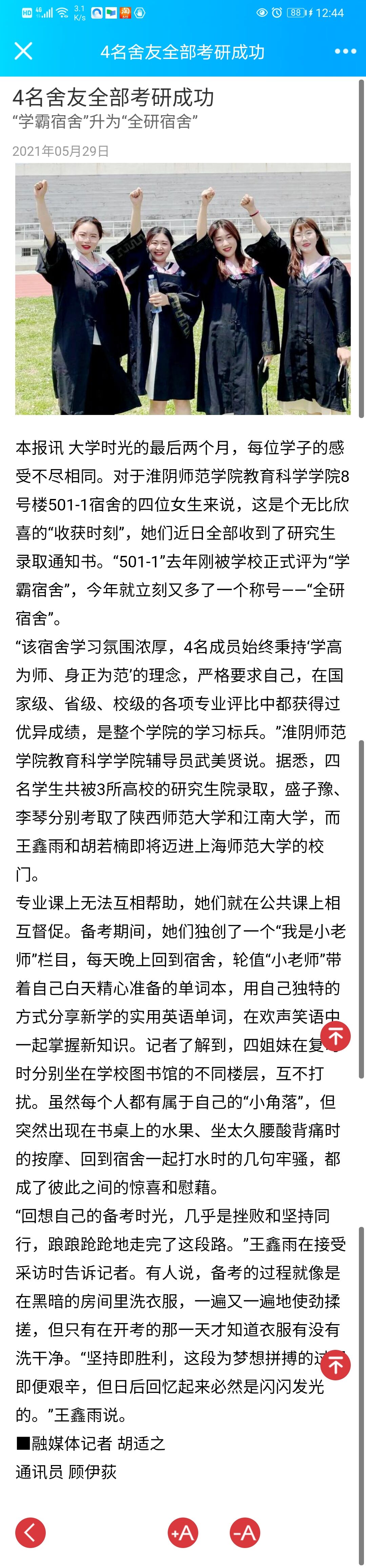 【淮海晚报】4名舍友全部考研成功 “学霸宿舍”升为“全研宿舍”